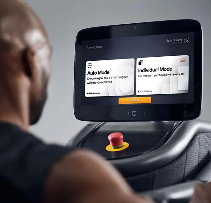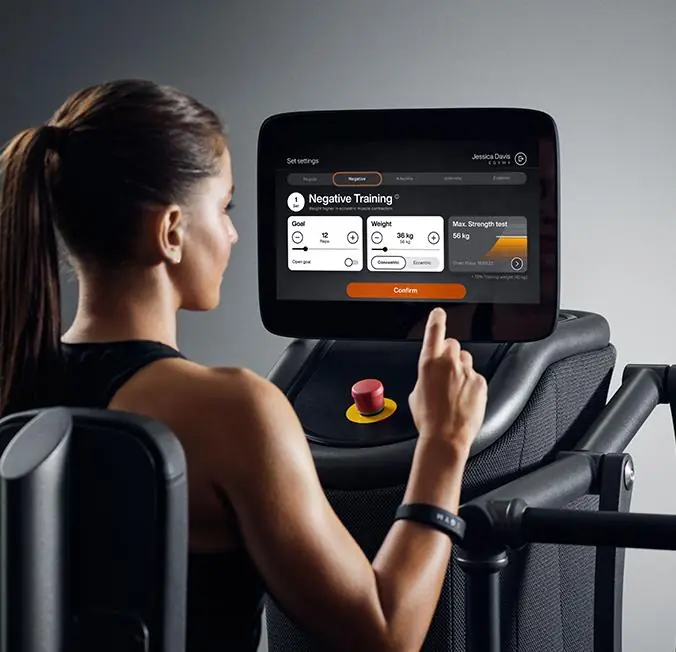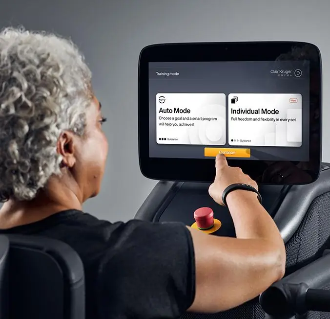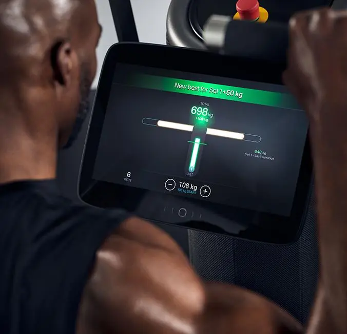 - Apparaten passen zich automatisch aan jouw instellingen aan, zoals weerstand en bewegingsbereik, gebaseerd op jouw persoonlijke fitnessniveau.
